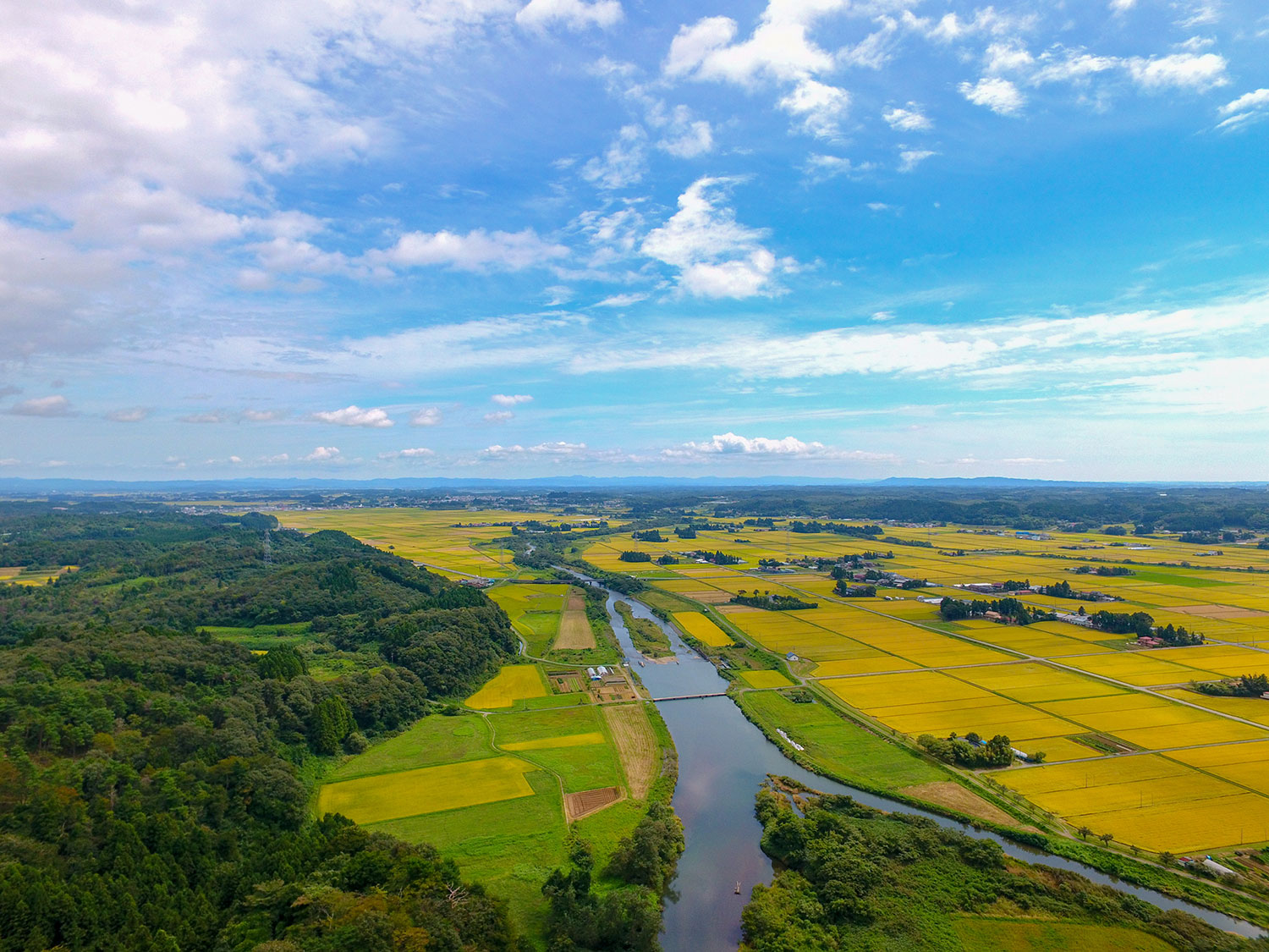 一迫川の周りには広大な水田が広がる(一迫地区)