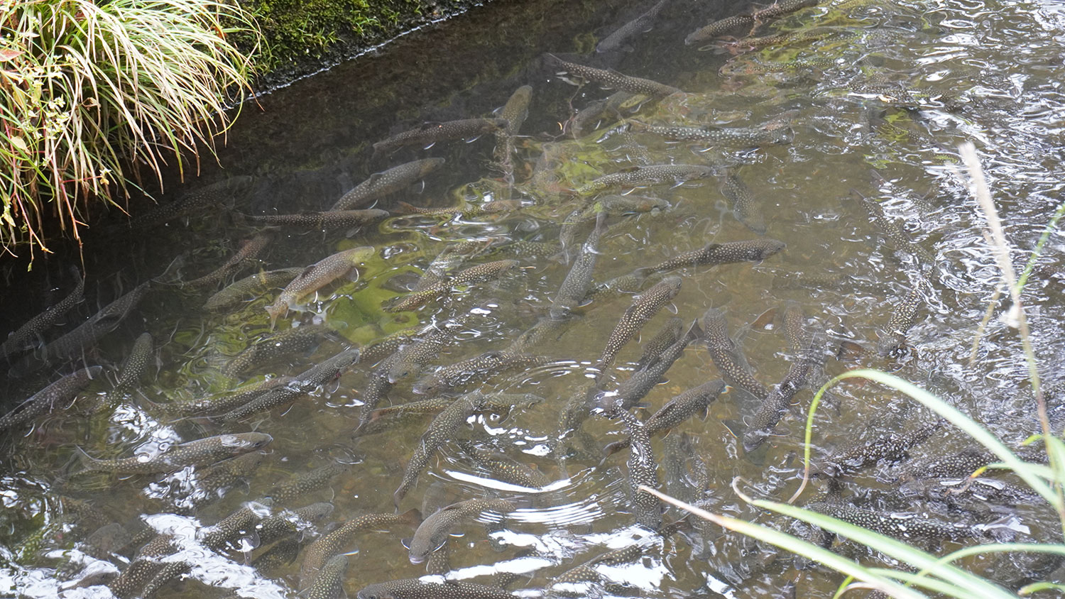 栗駒山の冷たく清らかな水を利用した岩魚養しょく