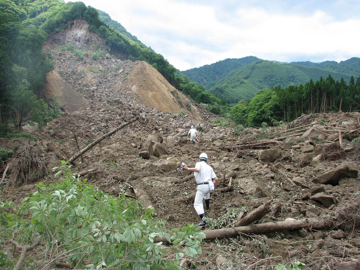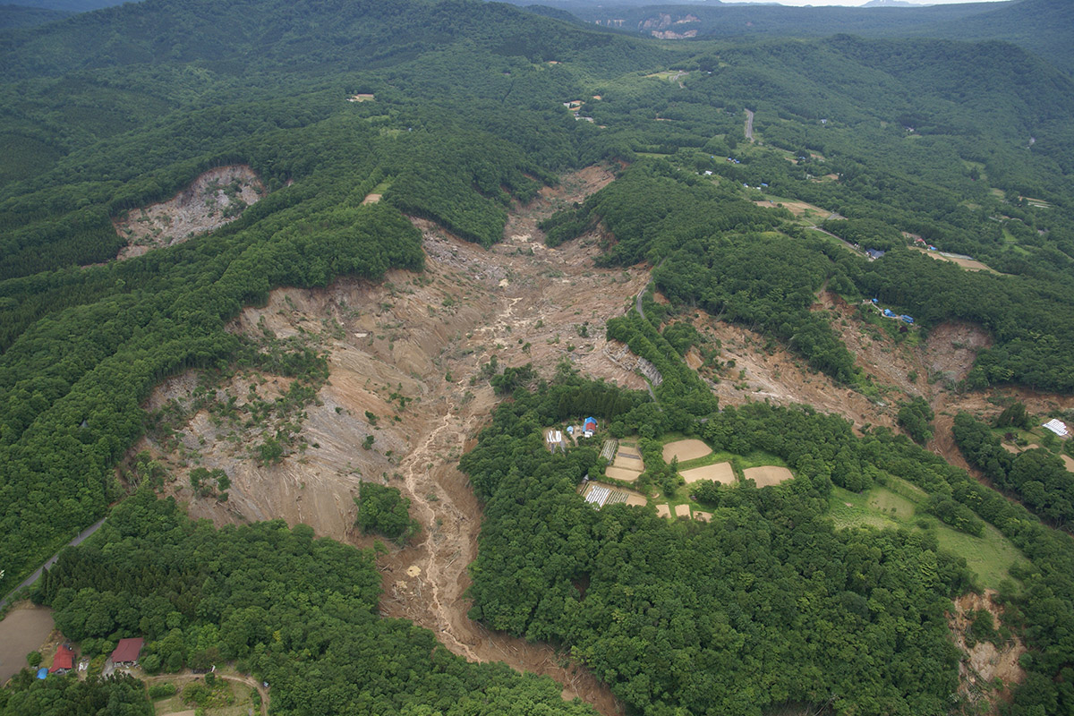 岩手・宮城内陸地震 冷沢の土砂くずれ