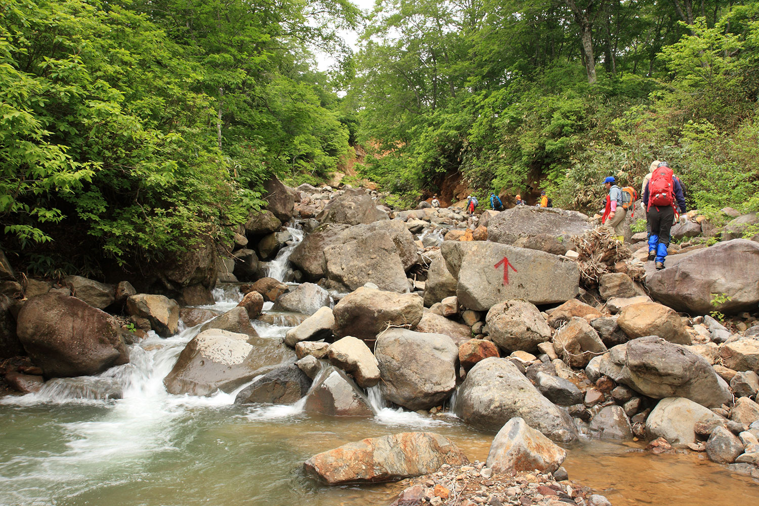 上流(山の中)のようす 栗駒山の登山道沿いの沢